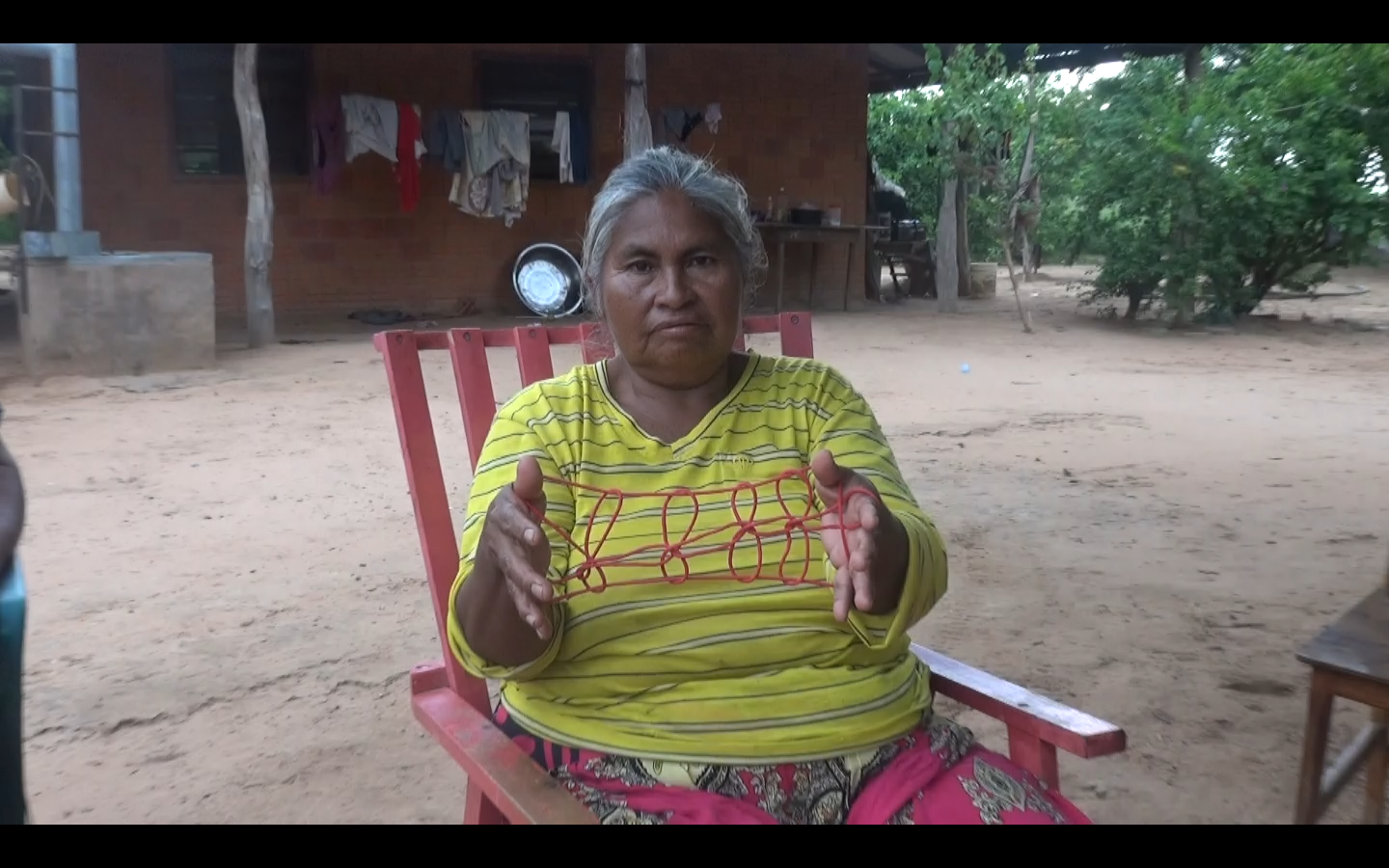 KETKEEM is a moving figure that represents for the Enlhet of Yalve Sanga people racing. The reiteration of a sub-procedure occurs as many times as the length of the string allows. Each reiteration produces a double vertical loop shape that represents a participant in the race. The figure is presented by alternately moving the hands up and down, which reduces the size of the figures and produces a distancing effect. In other groups of the Chaco, such as the Maka and the Nivacle people , this figure may have represented a ritual dance scene.